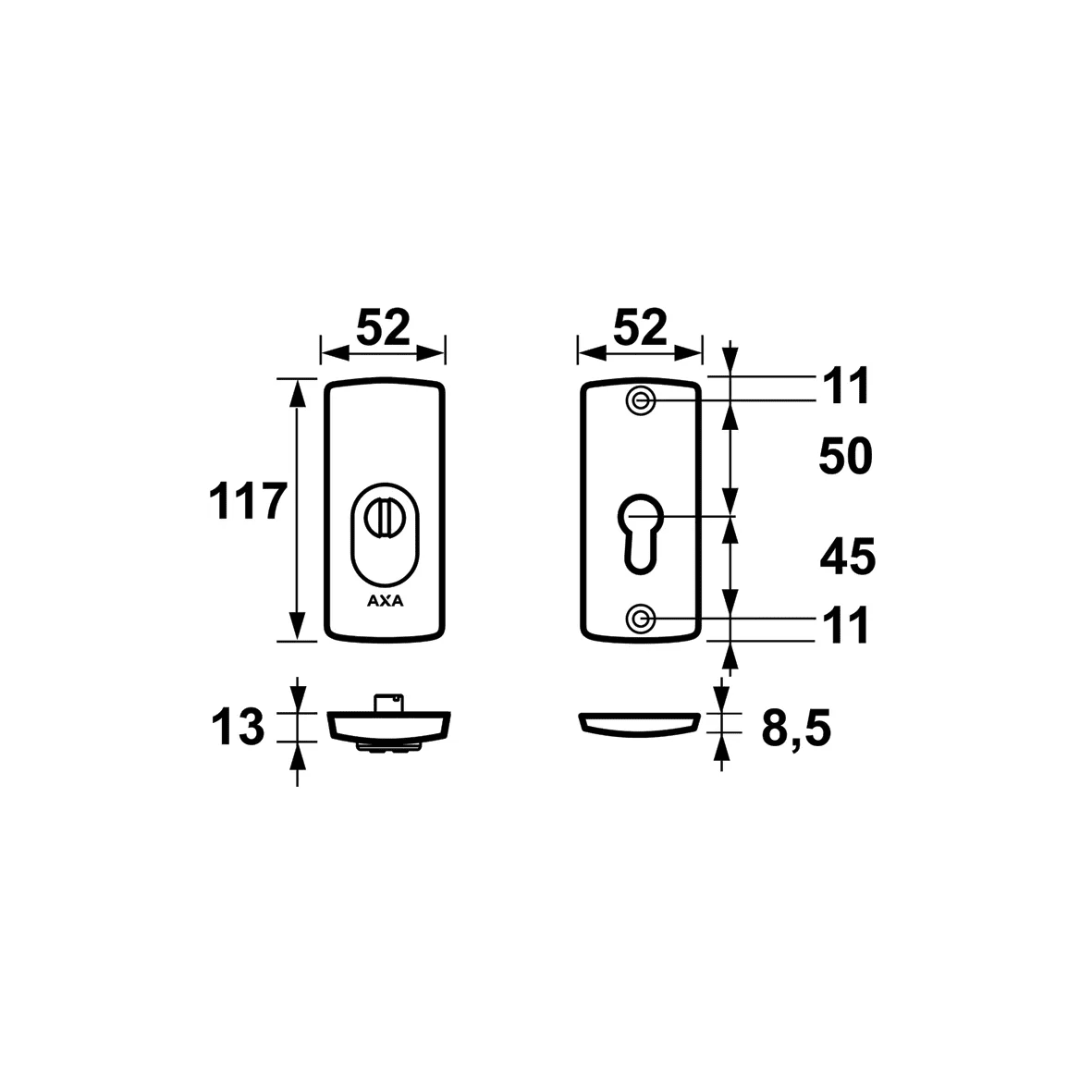 - Standaard toepasbaar op deuren van 38 tot 60 mm dik