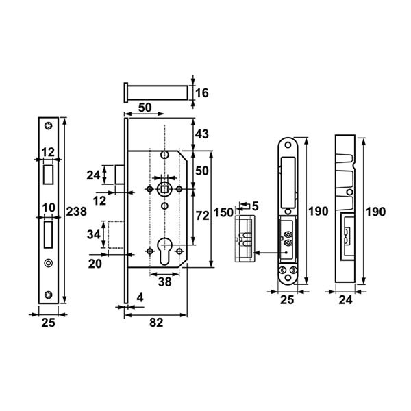- Inclusief: sluitkom sluitplaat en bevestigingsmateriaal