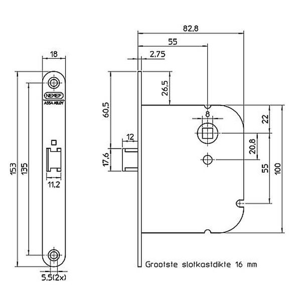 • Doornmaat 55mm