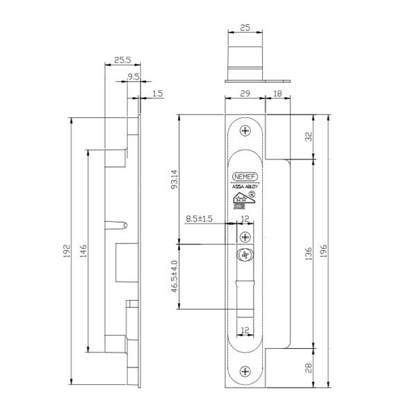 | Voorplaat breedte | 25 mm |
