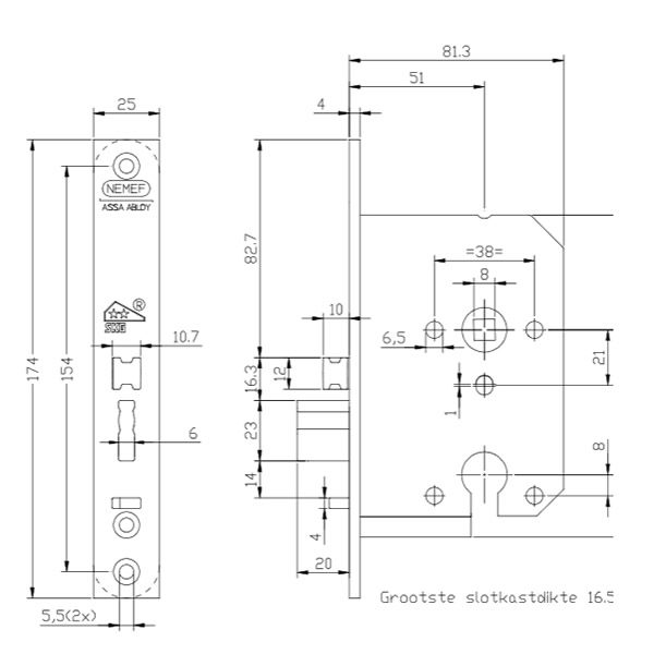 | Voorplaat breedte | 25 mm |
